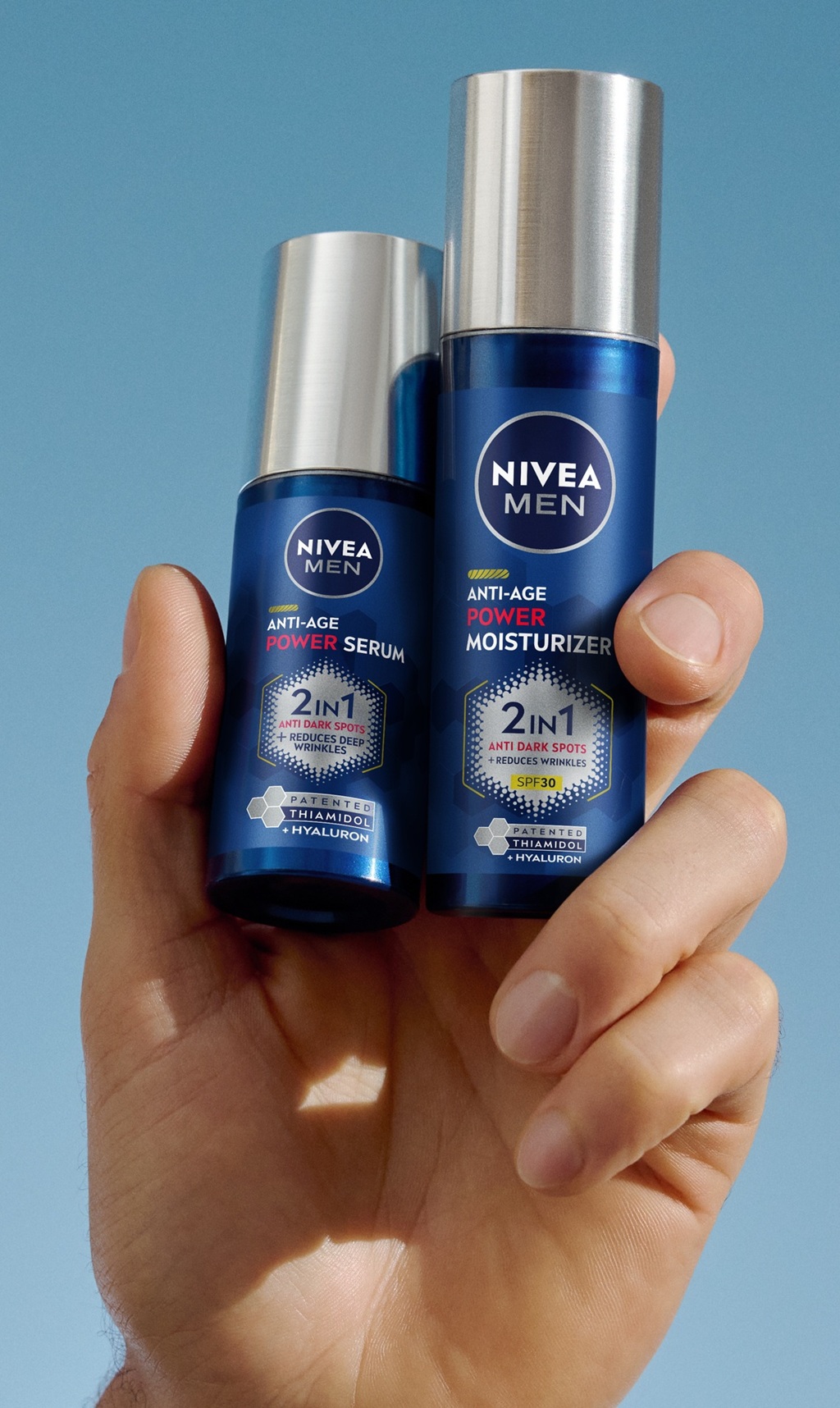 Luminous Men-serien erbjuder en lösning för flera tecken på åldrande, som trötta ögon, rynkor och mörka fläckar. Kombinationen av Luminous630 och hyaluron hjälper till att ge lyster och återfuktning för en fräschare och jämnare hudton. NIVEA MEN Luminous Anti-Age Power Serum och Anti-Age Power Moisturizer är specifikt framtagna med höga halter av Luminous630 för att absorberas väl i mäns tjockare hud.