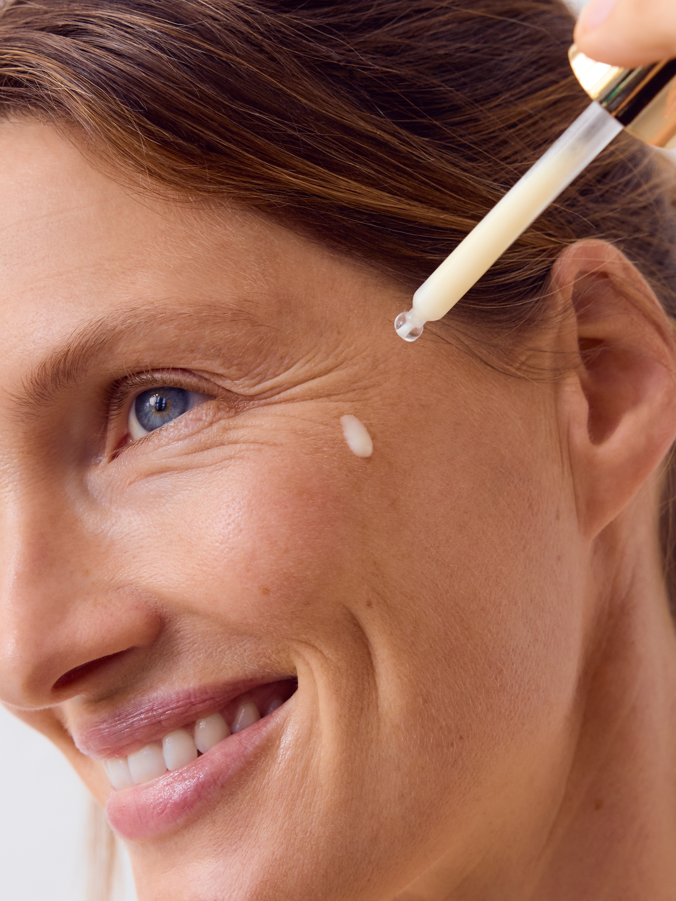 - Applicera ett solskydd med minst SPF 30 varje morgon – även när det är molnigt eller du är inomhus. UV-strålar kan tränga igenom moln och till viss del fönster, och konsekvent SPF-användning är ditt bästa skydd.