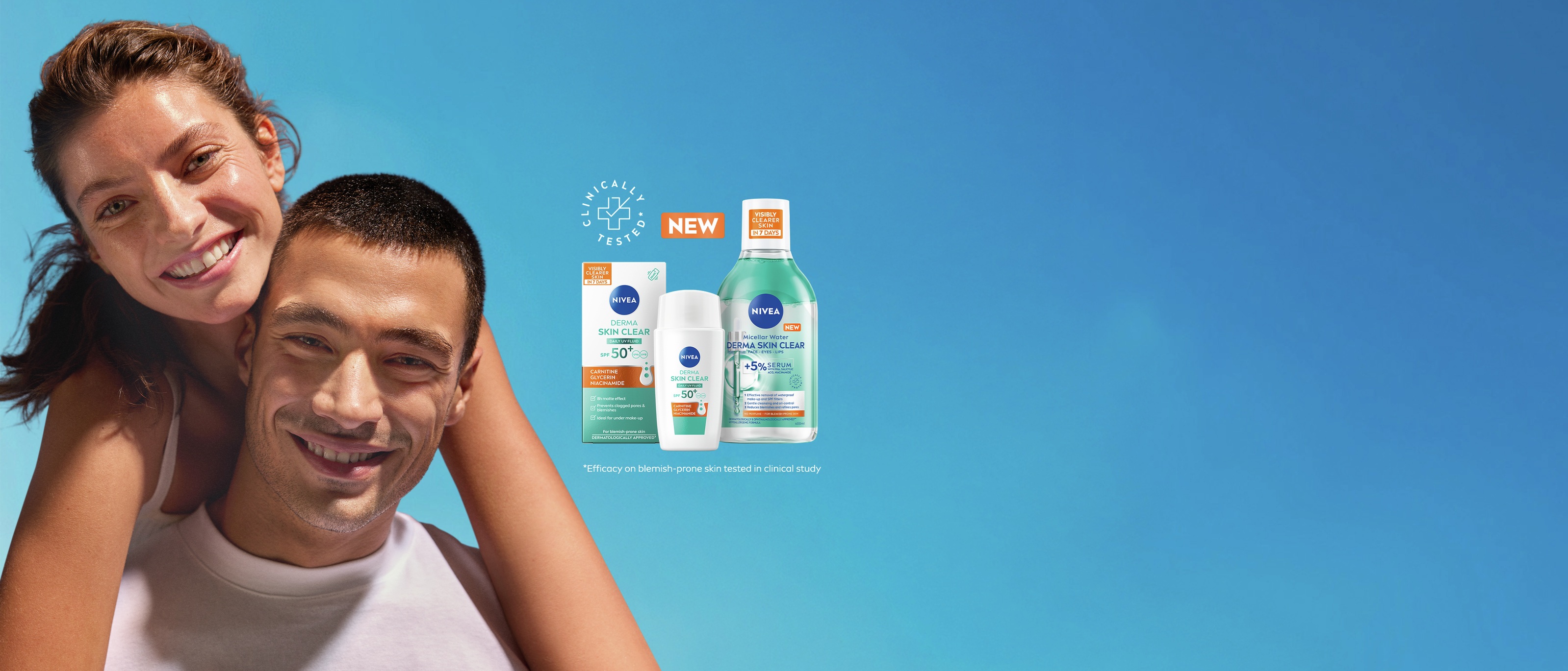 Använd sedan NIVEA Derma Skin Clear Scrub. Med salicylsyra (BHA), havssalt och niacinamid stödjer den hudens naturliga förnyelseprocess, förfinar porerna och minskar pormaskar och blemmor – utan att torka ut – för en klarare hudton.