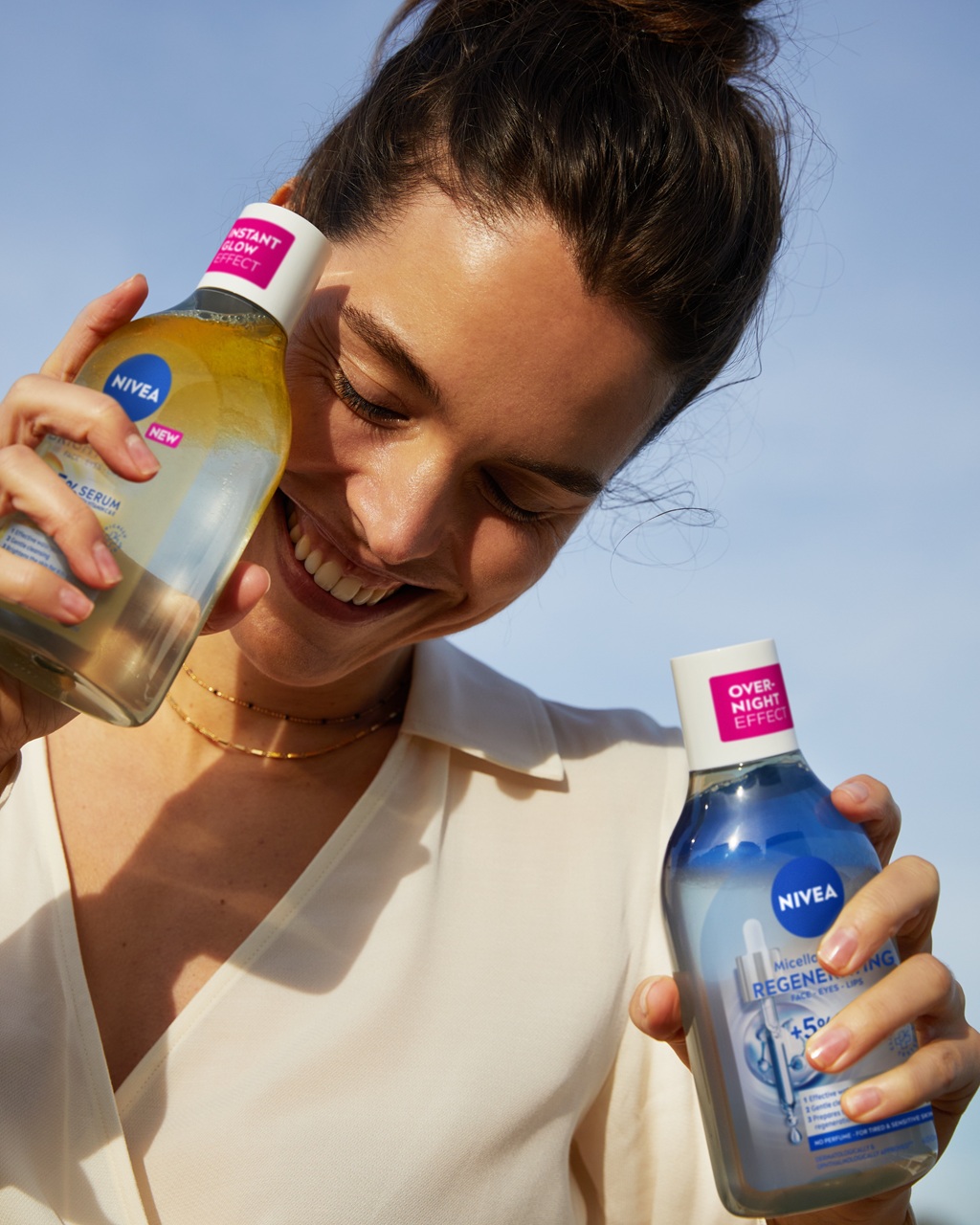 NIVEA:s micellära vatten är noggrant framtagna för att möta olika hudvårdsbehov och preferenser. De är berikade med serum som ger huden en boost, och den tvåfasiga rengöringen och makeupborttagningen fungerar som en dubbelrengöring, vilket innebär färre steg i kvällens hudvårdsrutin.