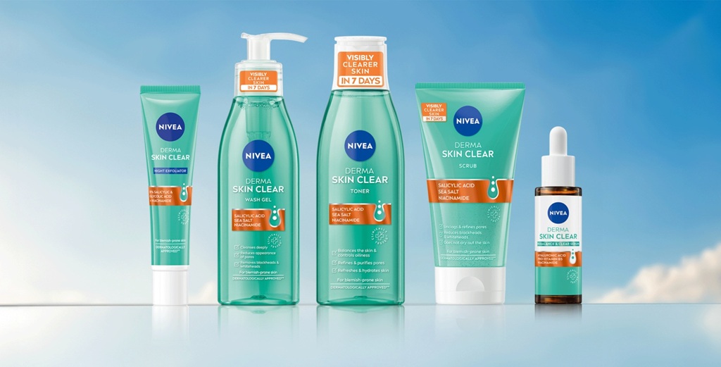 Niacinamid är tillräckligt milt för daglig användning och kan enkelt införlivas i din rutin med rätt produkter. Här är en steg-för-steg-guide med NIVEA:s Derma Skin Clear-serie med niacinamid som stödjer en hud som ser återfuktad och hälsosam ut.