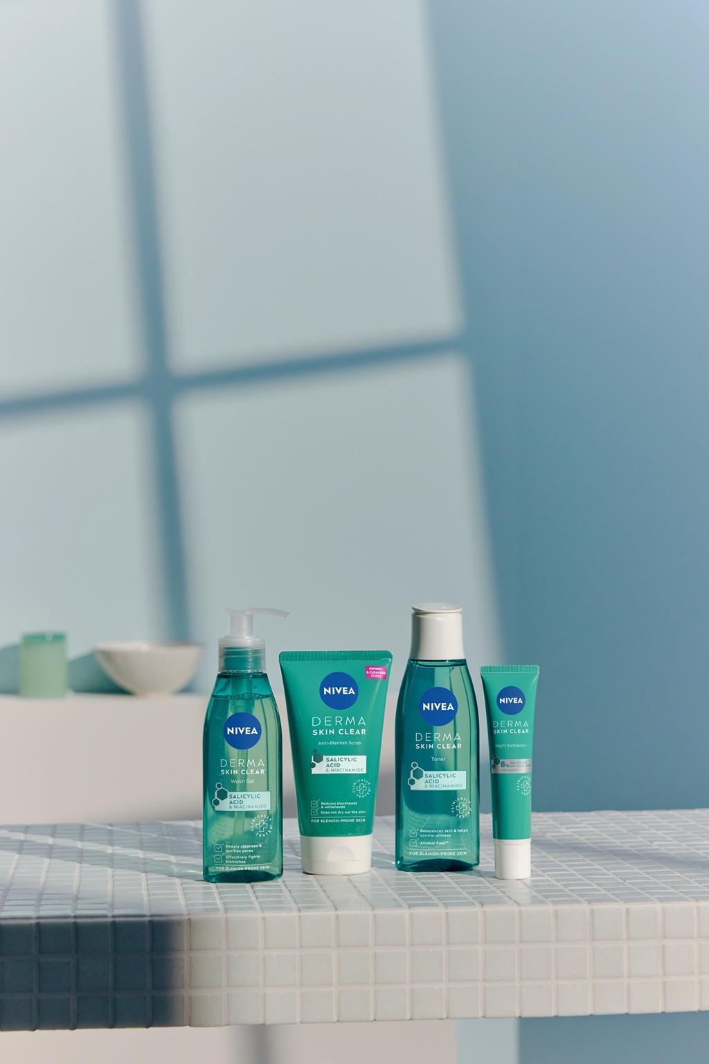 Den innovativa NIVEA Derma Skin Clear-serien är framtagen för en mer klar och förfinad hud. Den utnyttjar den klargörande kombinationen av salicylsyra & niacinamid för att lösa upp tilltäppta porer och med regelbunden användning reducera synligheten av vita och svarta pormaskar. Om din hud lätt får blemmor och utbrott kan den här serien vara precis vad du letat efter.
