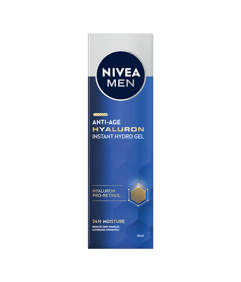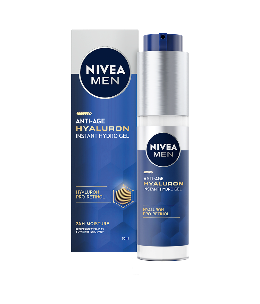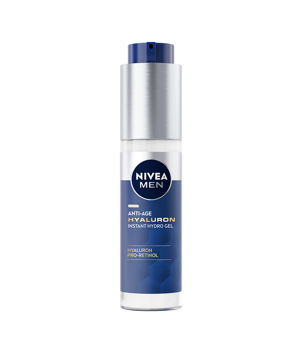 Friska upp din hud och minska djupa rynkor med NIVEA MEN Anti Age Hyaluron Face Gel. Få 24 timmars återfuktning för fastare, slätare och spänstigare hud.