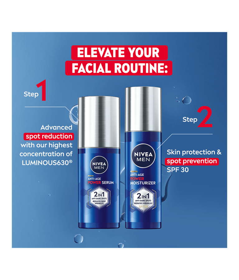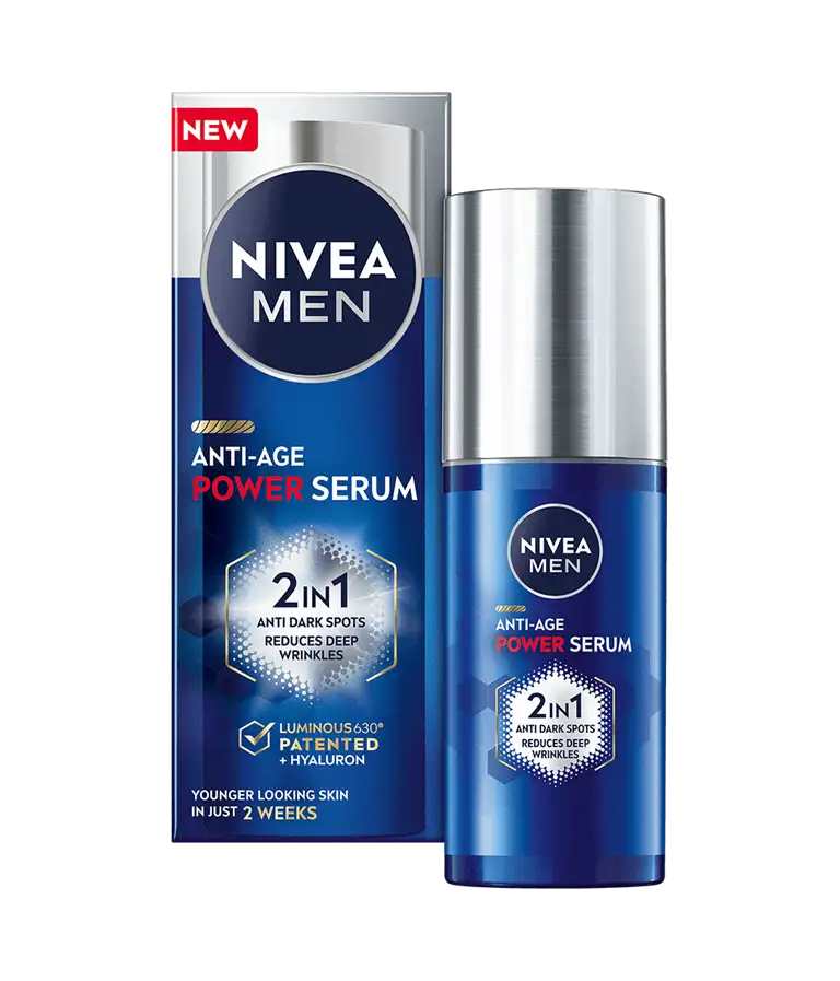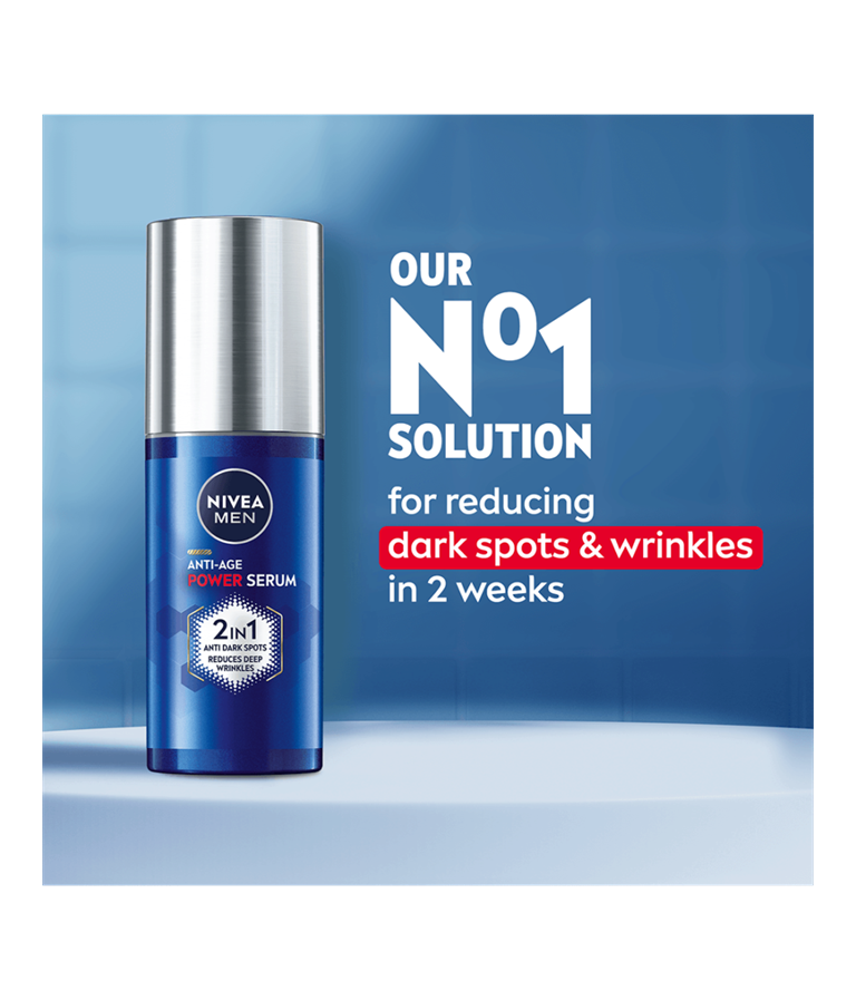 NIVEA MEN Anti-Age 2in1 Power Serum är ett återfuktande serum som motverkar tecken på hudåldrande och reducerar pigmentfläckar. För ett synligt resultat efter bara 2 veckor!