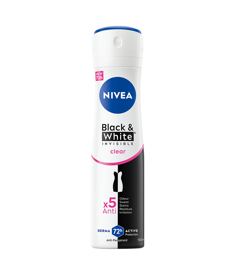 NIVEA Black & White Original Spray är en antiperspirant spray som förhindrar vita fläckar på mörka kläder och gula fläckar på ljusa kläder. Den ger ett effektivt skydd mot svett och lukt i 72h samtidigt som den är snäll mot din hud.