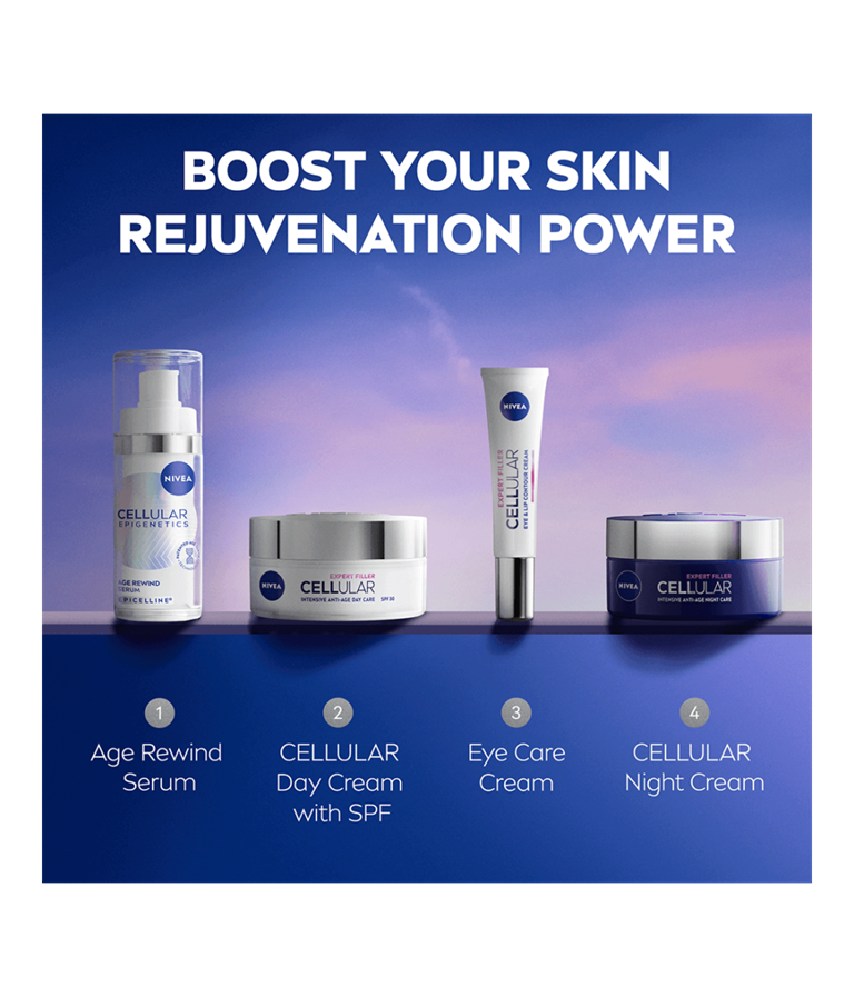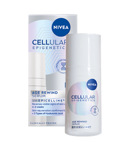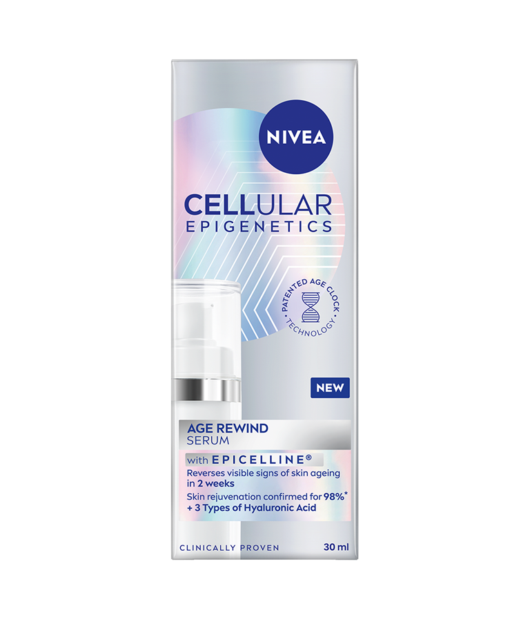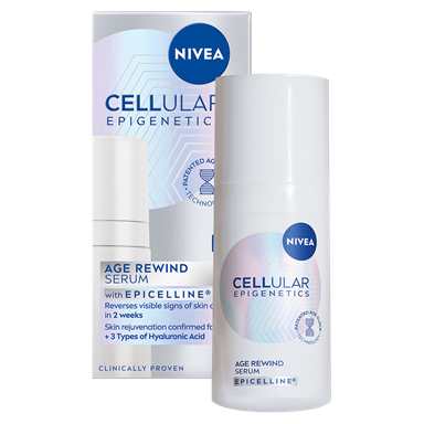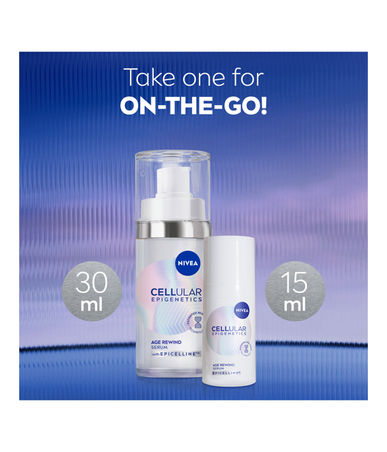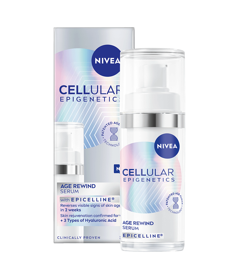NIVEA Cellular Epigenetics Age Rewind serum, med sin patenterade Age Clock Technology® och kraftfulla ingrediensen Epicelline®, ger dig synliga resultat på bara två veckor (in vitro).