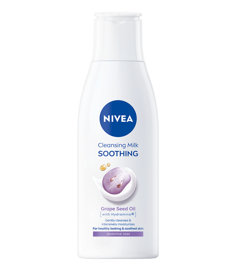 NIVEA Cleansing Milk Soothing är berikad med hydramine och druvkärneolja. Denna lugnande rengöringsmjölk rengör huden skonsamt och tar bort smink och mascara och lämnar huden frisk och lugnad.