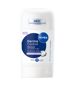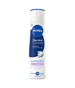 NIVEA Derma Control Restore-serien, med Hyaluronsyra och Vitamin E, lugnar irriterad hud efter rakning. Serien erbjuder 72 timmars svett- och luktskydd samtidigt som den gör dina armhålor mjukare och ger en behaglig känsla på huden. För känslig hud med hypoallergen doft.