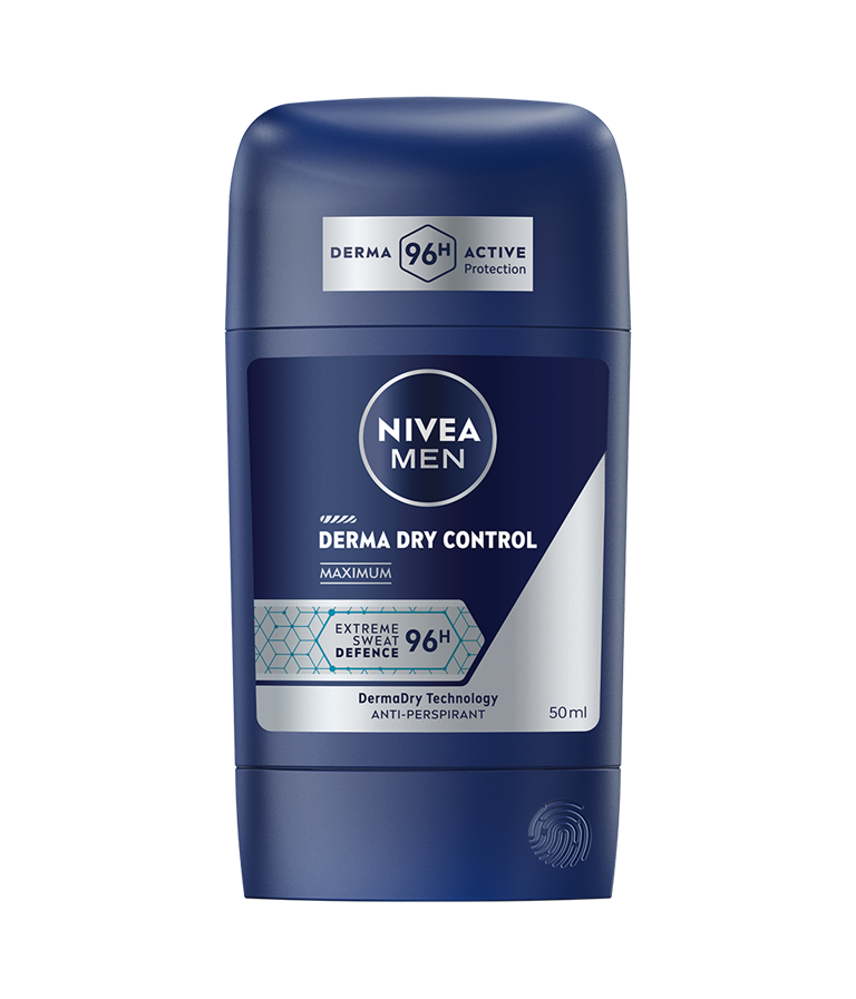 NIVEA MEN Derma Dry Control Maximum Stick med DermaDry Teknologi ger ett kliniskt bevisat skydd mot svett och lukt och skyddar huden. Tillförlitligt 96 timmars antiperspirantskydd som tar hand om din hud.