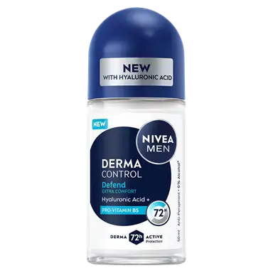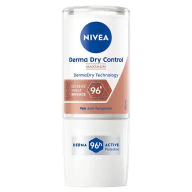 NIVEA Men Derma Dry Control Maximum Roll on med DermaDry Teknologi ger ett kliniskt bevisat skydd mot svett och lukt och skyddar huden. Tillförlitligt 96 timmars antiperspirantskydd som tar hand om din hud.