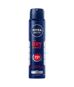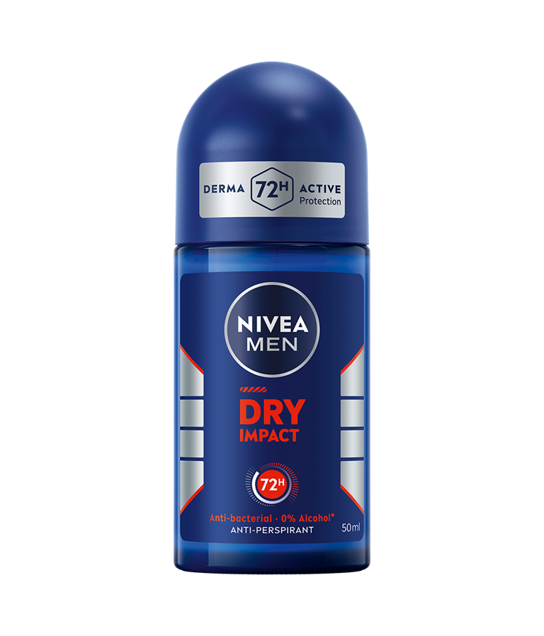 NIVEA MEN Dry Impact Anti-Perspirant är en roll on som ger dig 72 timmars effektivt skydd mot svett och lukt. Den effektiva dubbelverkande formulan hjälper dig att hålla dig torr från svett och förhindrar dålig lukt. .