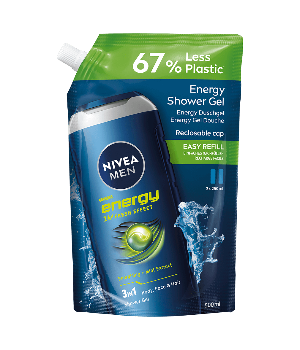 NIVEA MEN Energy Shower Gel Refill är perfekt för att kickstarta din dag med energi. Med en uppfriskande doft av naturlig mynta ger den en fräsch känsla som varar hela dagen. Ge dig själv en energifylld duschupplevelse!