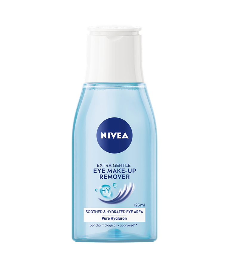 NIVEA Extra Gentle Eye Make-up Remover är berikad med Hyaluron och tar bort smink och mascara samtidigt som det känsliga området runt ögonen blir återfuktat. Med sin extra skonsamma formula är produkten perfekt för kontaktlinsbärare – helt utan irritation.