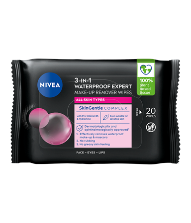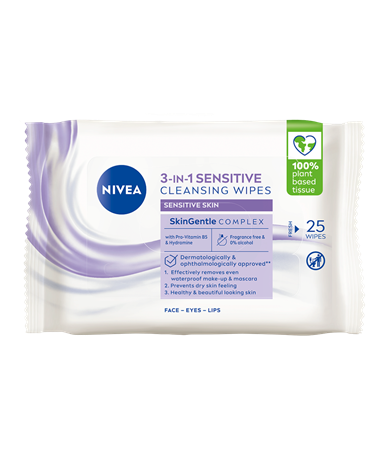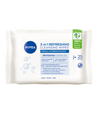 NIVEA Caring Cleansing Wipes: vårdande växtbaserade rengöringsservetter med SkinGentle-komplex som är snälla mot huden och skyddar dess fuktbalans. Tar effektivt och skonsamt bort vattenfast make-up och mascara och lämnar huden mjuk | 25 st