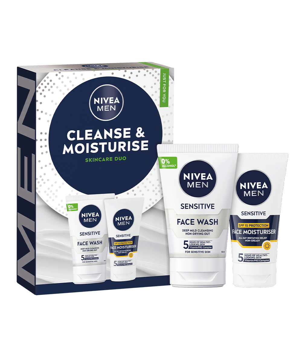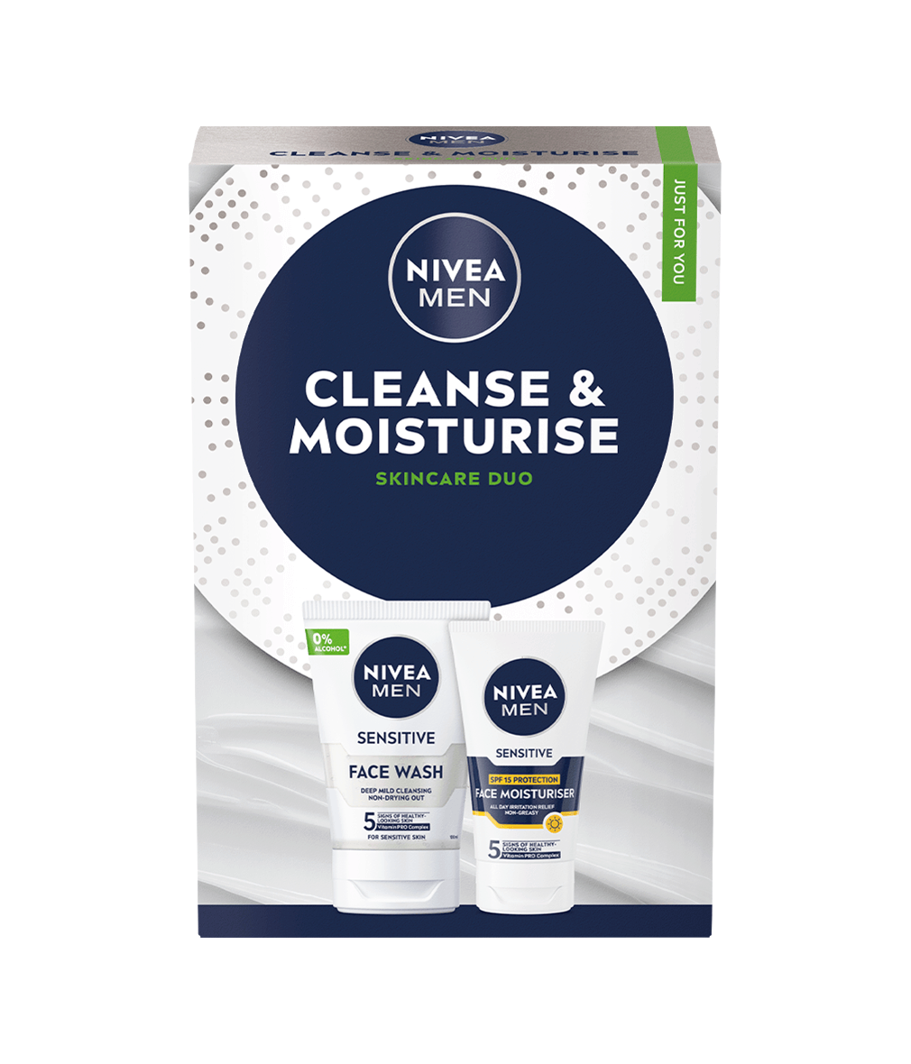 NIVEA MEN Cleanse & Moisturise Gift Pack är utformat för män med känslig hud. Perfekt för daglig användning, tar detta set hand om din hud utan att torka ut eller irritera. En perfekt present till män som vill ta hand om sig själva!