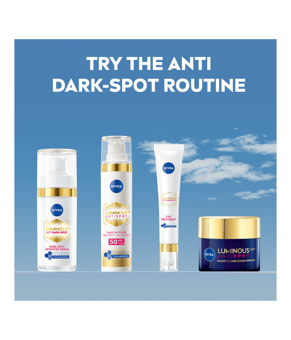 Luminous630 Anti Dark-Spot Eye Treatment riktar sig effektivt mot mörka ringar och påsar under ögonen. Formulan, berikad med Thiamidol®, balanserar pigmentförändringar och ljusar upp mörka ringar på 4 veckor.