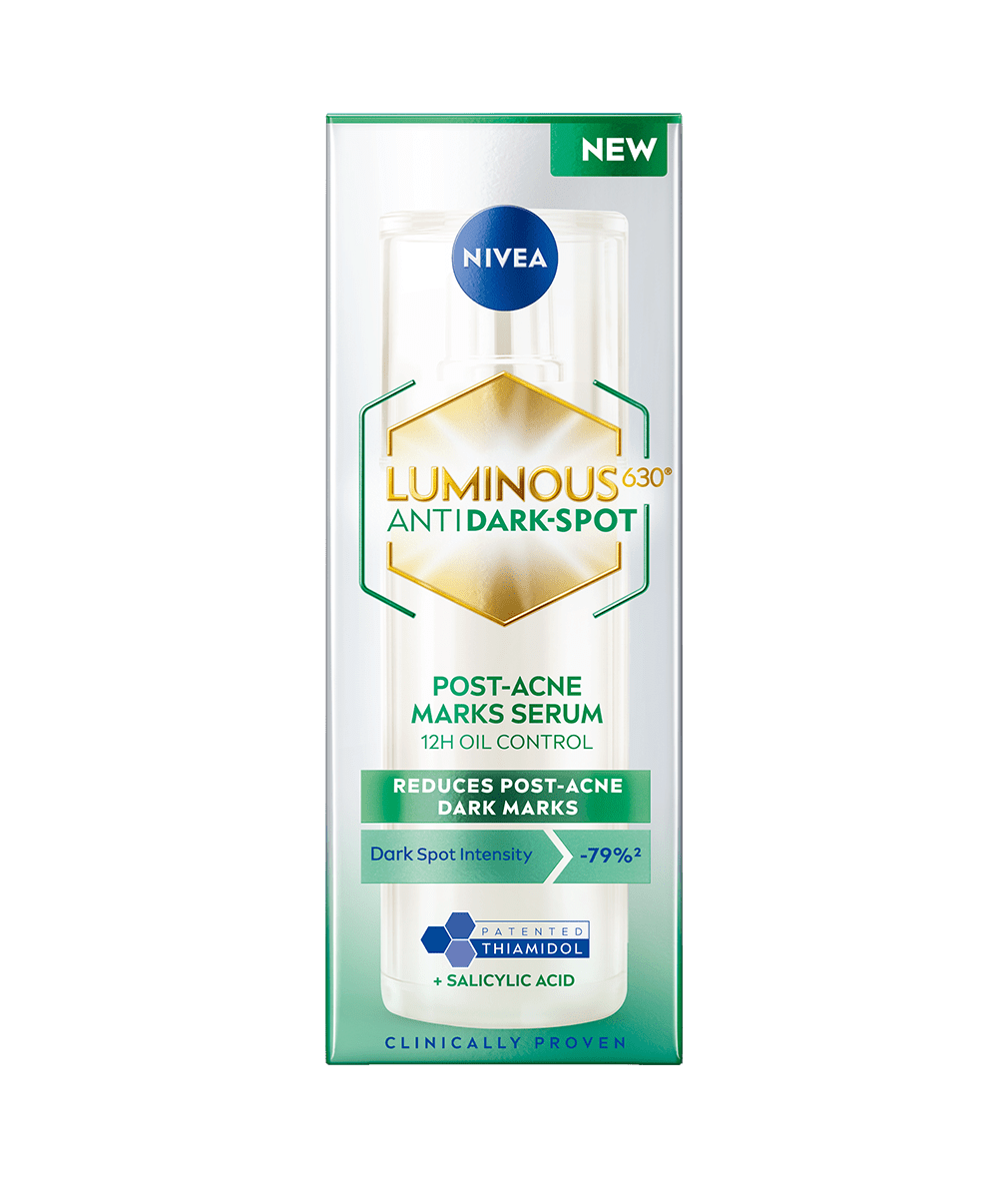 Få vackert strålande hud med NIVEA Luminous630 Antispot Post-Acne Marks Serum. Minskar synligt fläckar och jämnar ut hudtonen för en felfri finish.