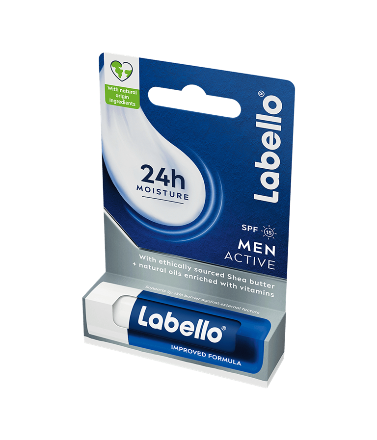 Ta hand om dina läppar så att de är mjuka och fräscha hela dagen! Den behagligt mjuka konsistensen i detta vårdande läppbalsam smälter omedelbart in i dina läppar och förhindrar att de torkar ut. Med SPF 15 | Labello Men Active Lip Balm
