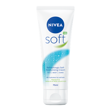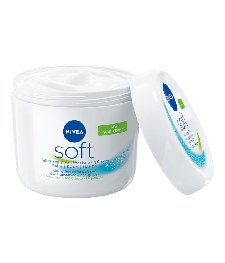 NIVEA Soft är en lätt och återfuktande hudkräm som ger 48 timmars intensiv återfuktning. Perfekt för daglig användning på kropp, händer och ansikte. Den passar alla hudtyper.