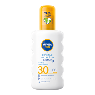 NIVEA SUN Protect & Bronze Oil Spray SPF 30 är ett solskydd för en jämn och vacker solbränna. Solskyddsoljan har en dubbel effekt: den skyddar huden mot UV-strålar + ger naturlig solbränna med bevisad melaninaktivering.