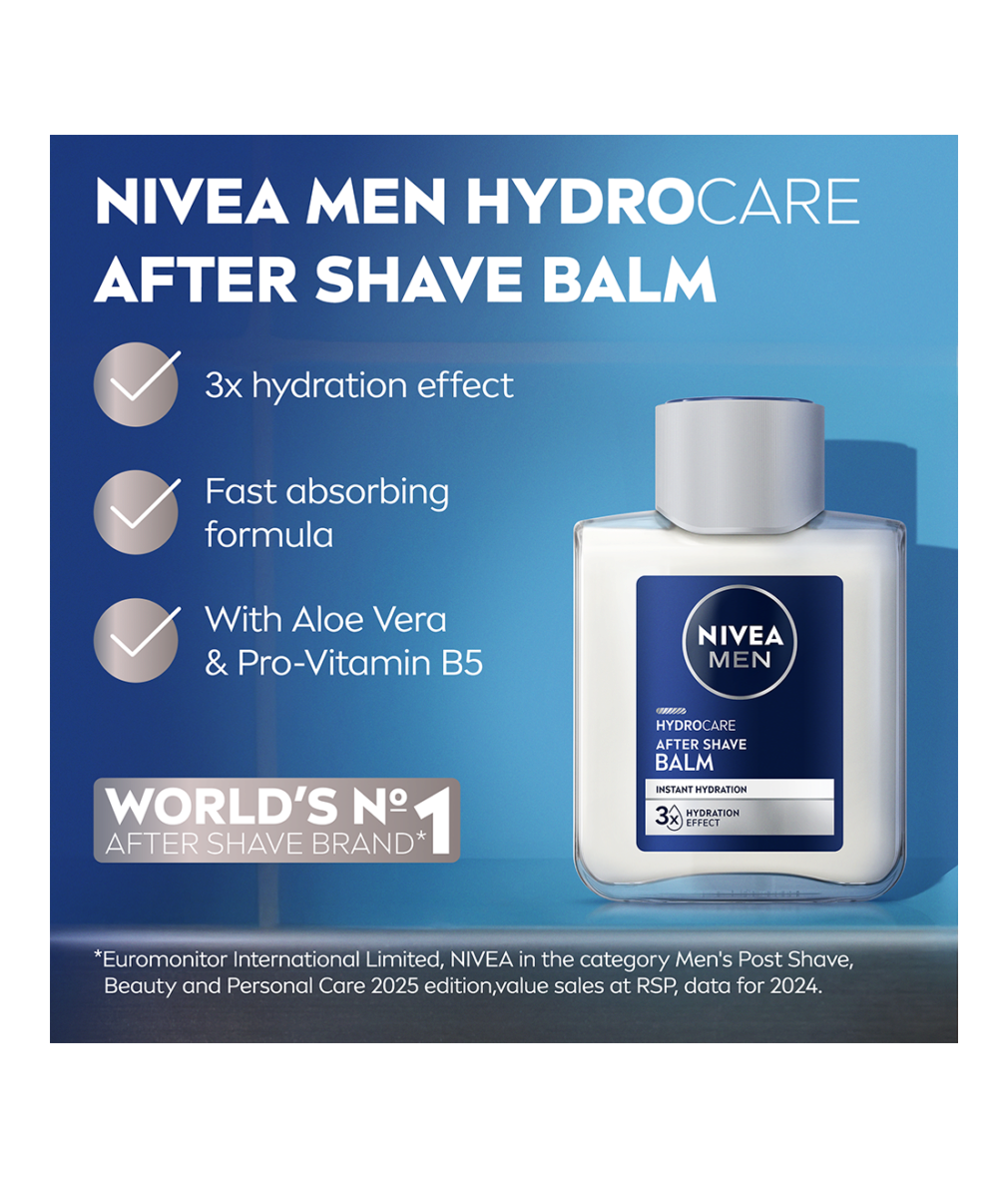 NIVEA MEN Hydrocare After Shave Balm är ett rakbalsam som återfuktar omedelbart och skyddar din hud från att torka ut. Krämen har en mild, kladdfri formula berikad med Alo Vera och Provitamin B5 som omedelbart lugnar obehag i huden och ger en långvarig och intensiv återfuktning.
