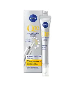 NIVEA Q10 Anti-Wrinkle Expert Dual Action Serum med Anti-Glykeringsteknologi berikad med ren Q10 och GLYCOSTOP både reducerar djupa rynkor och motverkar uppkomsten av nya rynkor.