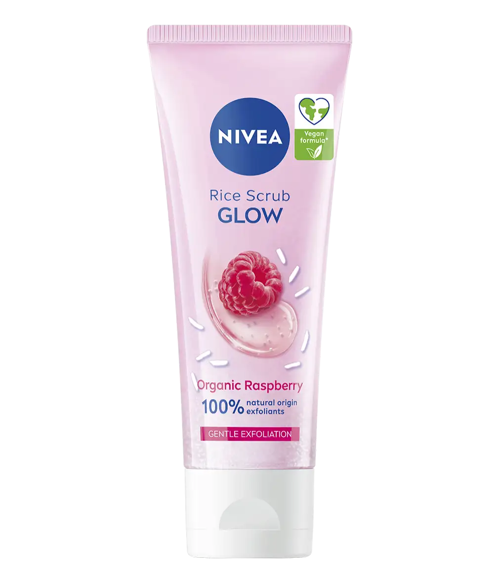 NIVEA Rice Scrub Glow är en ansiktsskrubb som är berikad med ekologiskt framställda Japonica-risfrön och hallon. Denna exfoliering exfolierar skonsamt och tar effektivt bort döda hudceller utan att irritera huden.