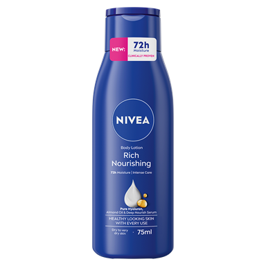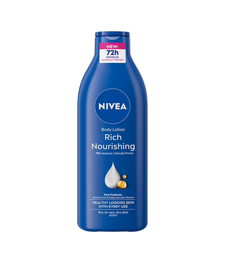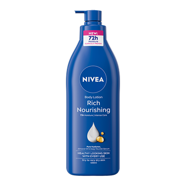 Upptäck Rich Nourishing Body Lotion med ny förbättrad formula för en hud som ser hälsosam ut efter varje användning. Återfuktar i 72 timmar och ger näring på djupet. För märkbart mjuk och len hud. Berikad med hyaluron, mandelolja och djupt närande serum. Icke-kladdig och snabbabsorberande.