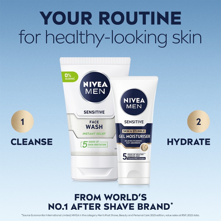 NIVEA MEN Sensitive Skin & Stubble Gel Moisturiser är en återfuktande ansiktsgel för män med känslig hud. Snabbabsorberande formula för en frisk och välvårdad look hela dagen!