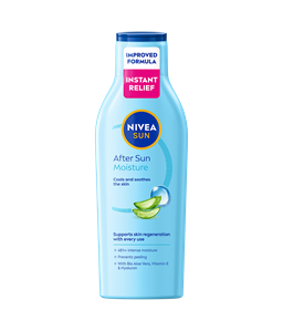 Efter en lång dag i sommarsolen behöver huden all den omtanke den kan få. UV-strålning belastar och torkar ut huden, vilket många upplever som stramhet och sveda – NIVEA:s After Sun-produkter ger omedelbar hjälp och lindring. De vårdande ingredienserna och de särskilt utvecklade sammansättningarna är skonsamma mot känslig hud, hjälper till att stärka hudens naturliga skyddsbarriär och kan underlätta återhämtning och avslappning som en del av din after sun-vård. Den lätta, svalkande konsistensen gör produkterna enkla att applicera varsamt och effektivt – extra viktigt när huden är irriterad och känslig. Förutom att använda NIVEA:s After Sun-produkter finns det mer du kan göra efter solexponering: ta en paus i skuggan och skölj sedan bort solkräm, sand, salt eller klor i en ljummen dusch. Klappa huden torrt med en handduk och undvik att gnugga för hårt. Solen påverkar inte bara huden, utan stressar även håret när det behöver extra mild omvårdnad. Ett extra vårdande schampo eller en hårinpackning kan ge håret, som påverkats av solen, långvarig vård och hjälpa till att hålla det mjukt och friskt.