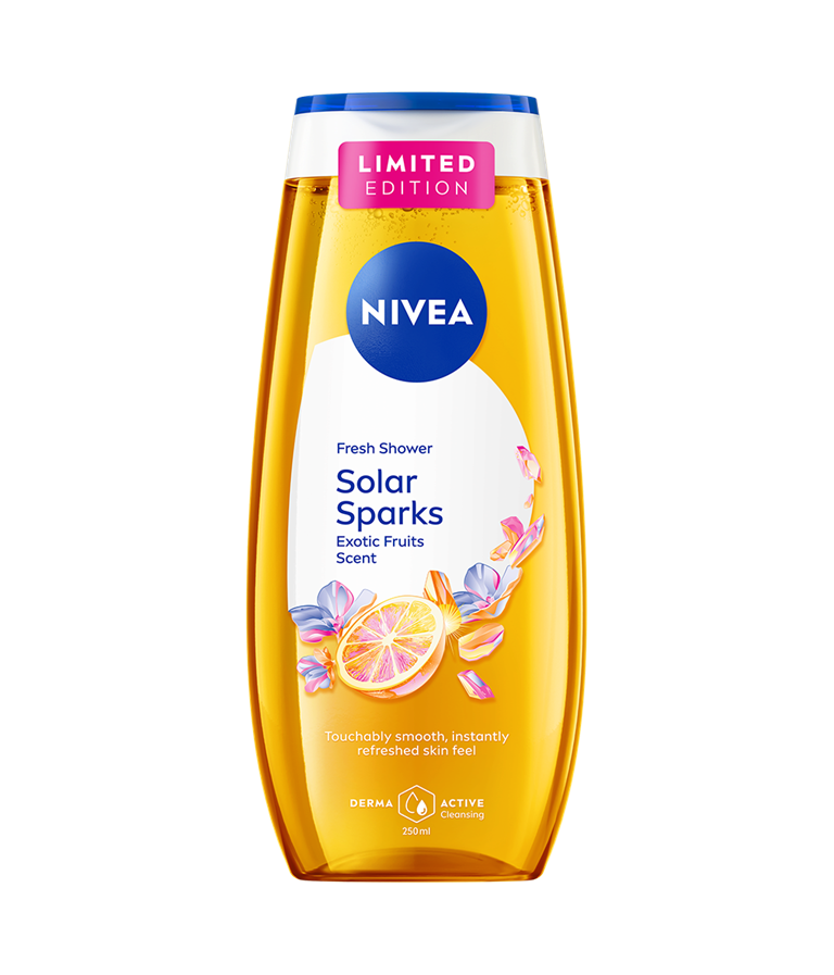 NIVEA Solar Sparks Shower Gel är en duschgel som ger en märkbart mjuk och uppfriskande hudkänsla samt skyddar huden från uttorkning. Berikad med vårdande ingredienser och en uppfriskande doft av exotiska frukter.