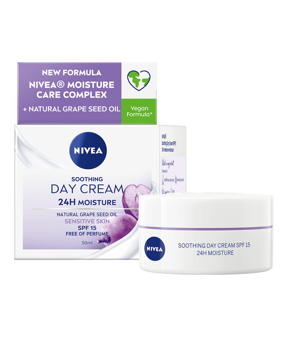 Denna lugnande dagkräm med naturlig druvkärneolja & lakritsextrakt återfuktar din hud samtidigt som den stödjer hudens naturliga motståndskraft mot hudirritationer. SPF 15 skyddar din hud mot solljus-inducerade påverkan | 50 ml
