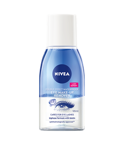 NIVEA Waterproof Eye Make-up Remover berikad med provitamin B5 och kamomillextrakt avlägsnar effektivt vattenfast mascara och ögon-make-up. Dermatologiskt och Oftalmologiskt testad.